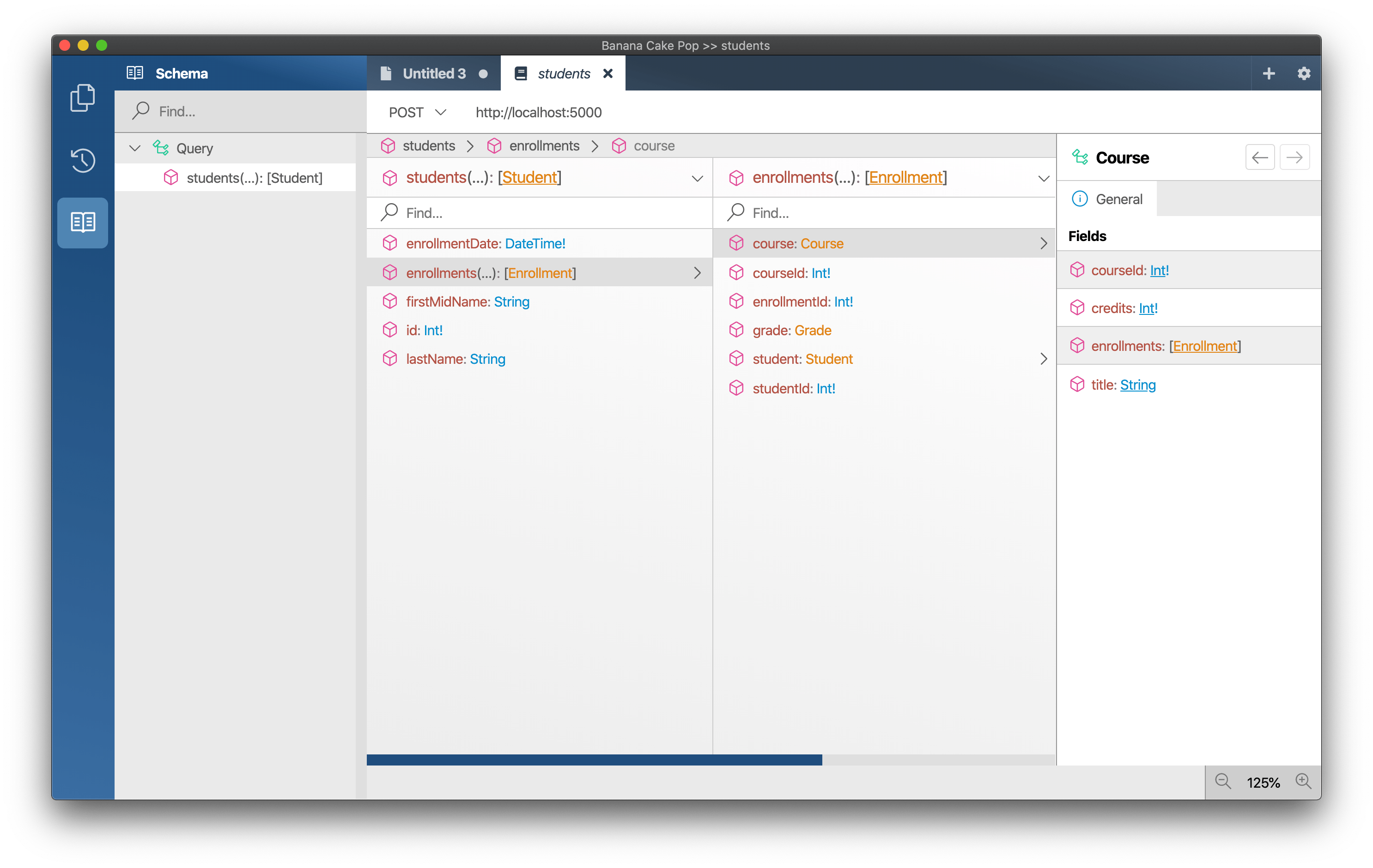 If we did something like that with Entity Framework we actually would need to write a couple more resolvers to fetch the edges of the entity like the Enrollments since with this resolver there is no middleware that does the hard work for us. With the resolver above we are fully in control of the data fetching.