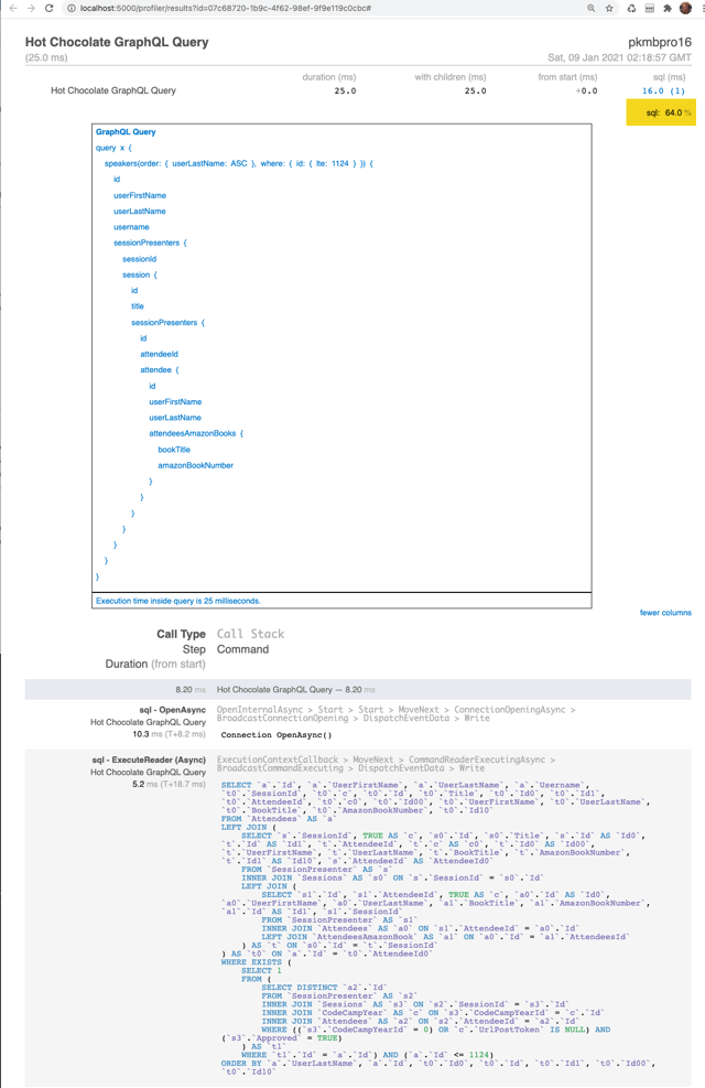 https://github.com/pkellner/hot-chocolate-query-logging/blob/main/MiniProfilerQueryLogger.cs